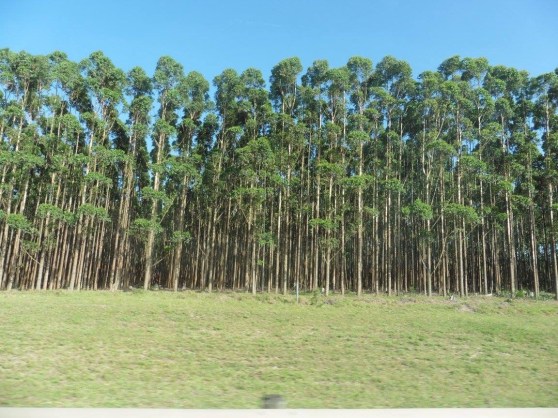 About an hour into our journey we stopped for coffee and Steve had bought along some crossnants so we could eat on the go – further along we also saw forests of eucalyptus trees (Australian) also 90kms for trees, I have never seen such spindly eucalyptus trees they looked sick half starved – the trees are planted and used for paper production – I did make the comment that’s why all the paper was thin (I noticed much of the paper used is of a thinner quality) in Durban because the trees were thin…