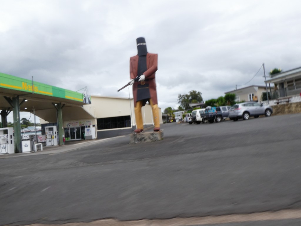 Morning coffee break was made in a town called Wellington. I could not get used to the idea there was a Wellington in NSW – the only Wellington I know is in New Zealand – it took some getting used to. I thought this was a unique little town, it was vibrant however, some empty shops, beautiful buildings, it was lovely. Called into the Information Centre again they were very helpful. Gave us a run down on the history of the town and its name – yes, the town was named after the Duke of Wellington (England). We picked up a couple of postcards, some freebee doggie high visibility kerchiefs about driver reviver and we had brunch at the “Four Fat Cats” – which happened to be an old infant school building – it was great.